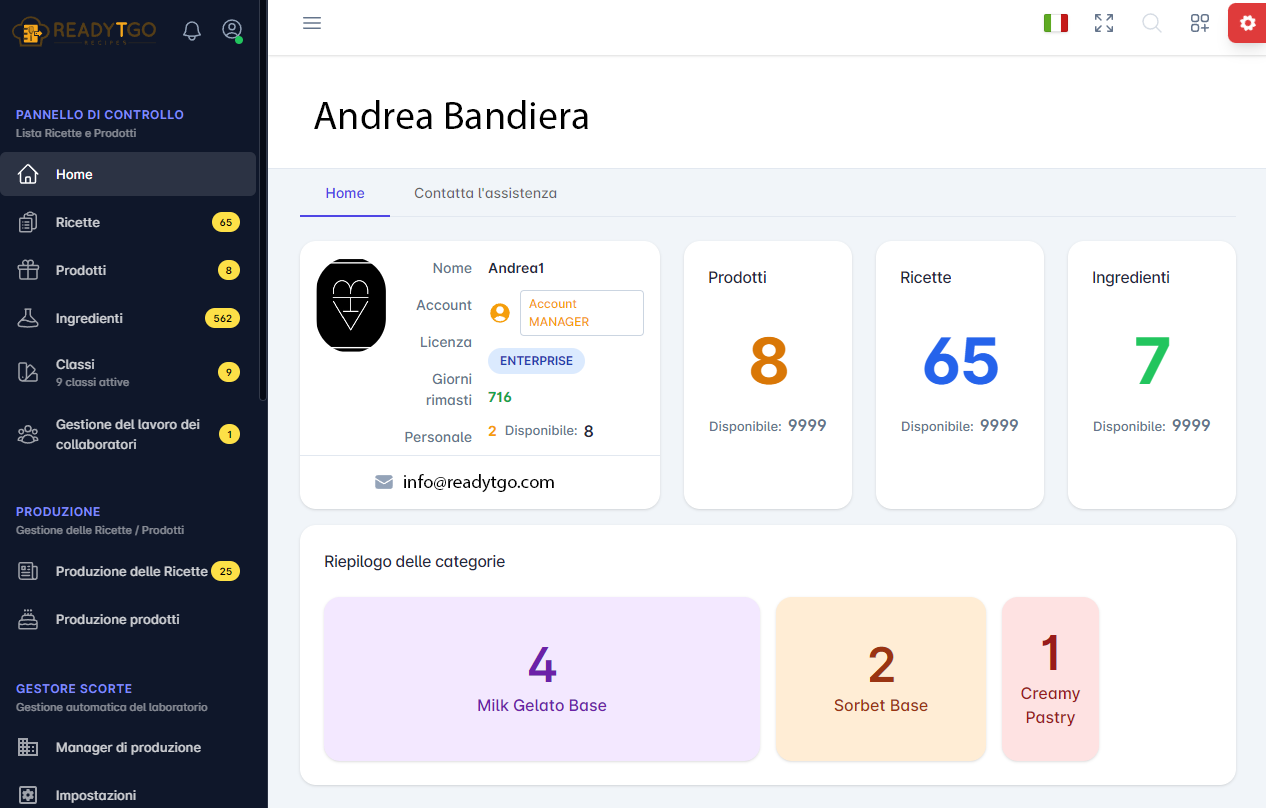 Il Production Manager automatizza la gestione del laboratorio, supervisionando la produzione del negozio, gli ingredienti e i processi per efficienza, coerenza e controllo qualità.